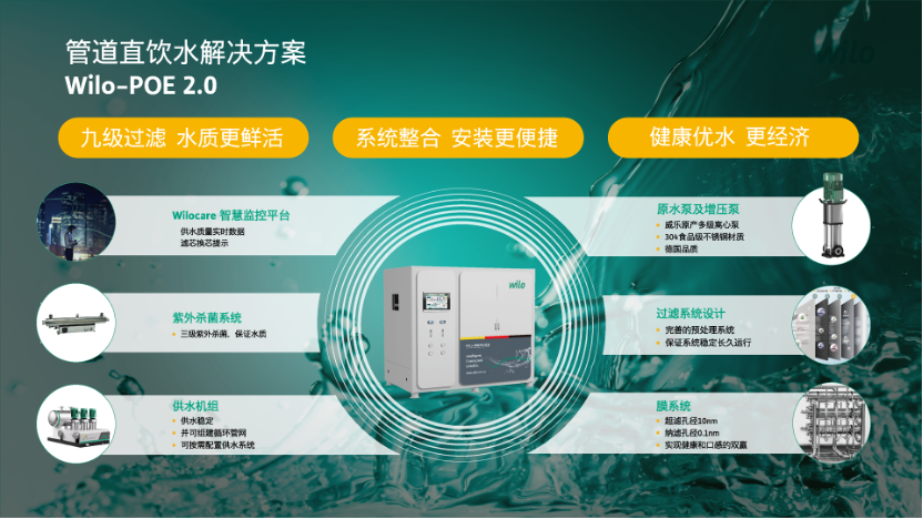 提升全民饮用水品质,推动健康中国行动落地的解决方案:Wilo-POE 2.0智能净水设备;