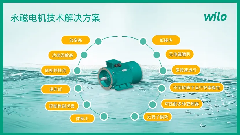 威乐永磁电机技术解决方案,最高标准的效率,适用于多种泵型,将成为节能减排的利器;