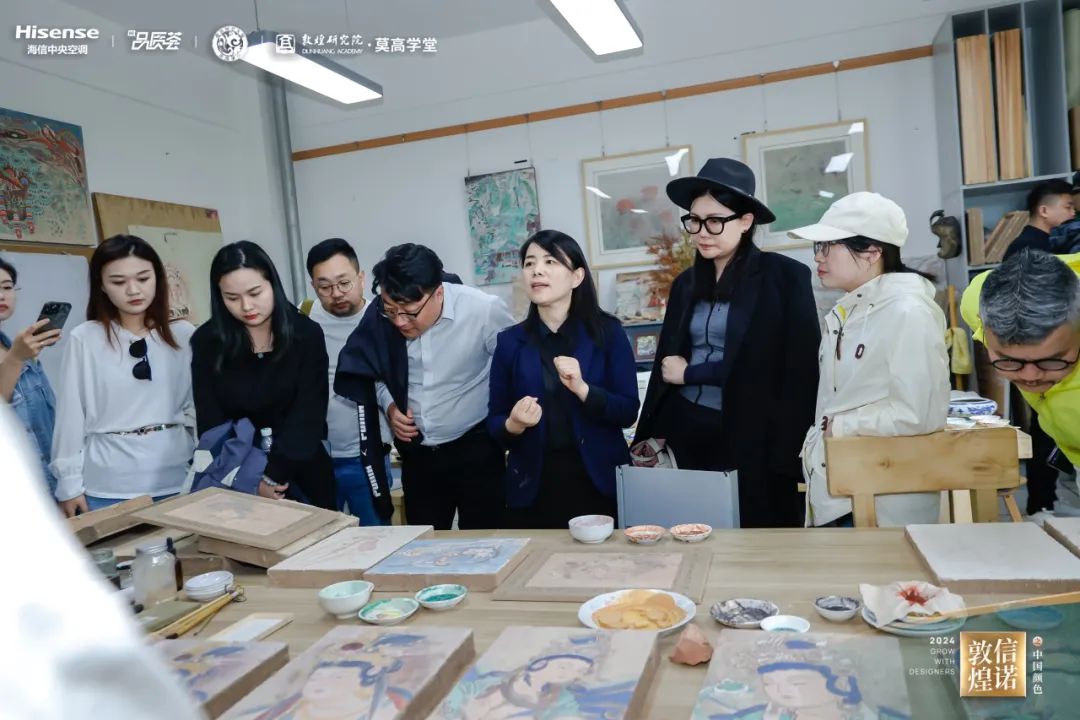 随后,王老师带领设计师们参观其个人工作室,结合现场作品让设计师近距离体验每一笔、每一线中蕴含的敦煌深厚文化底蕴和历史故事,让人仿佛置身于千年前的艺术殿堂。
