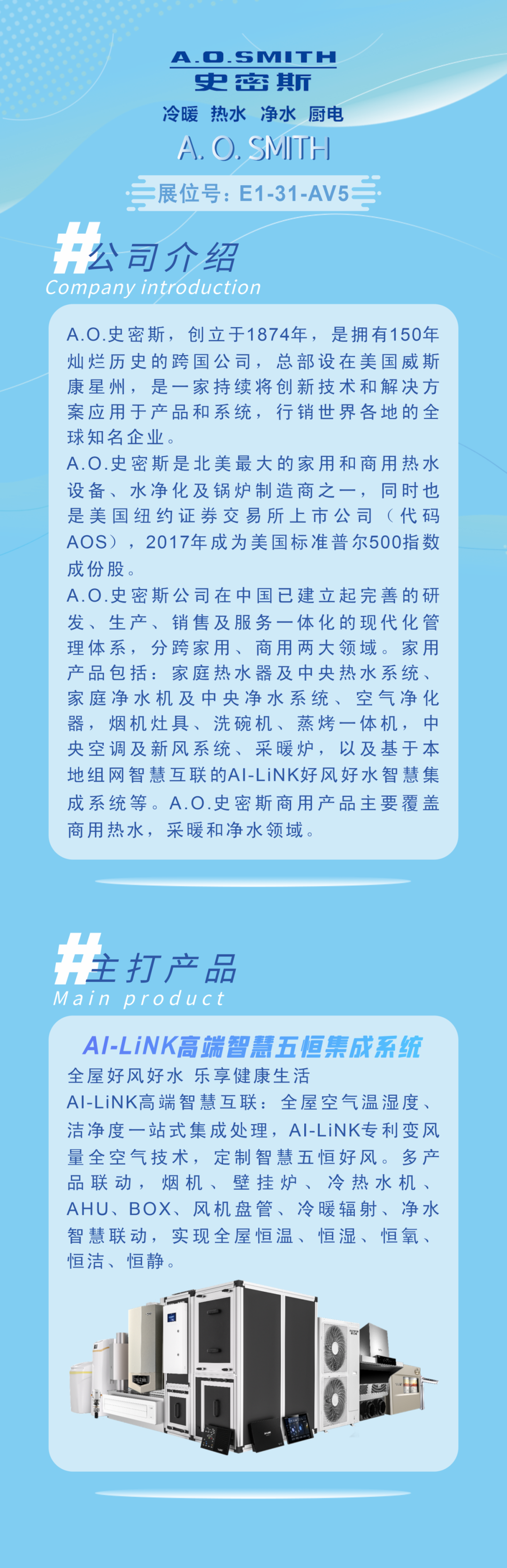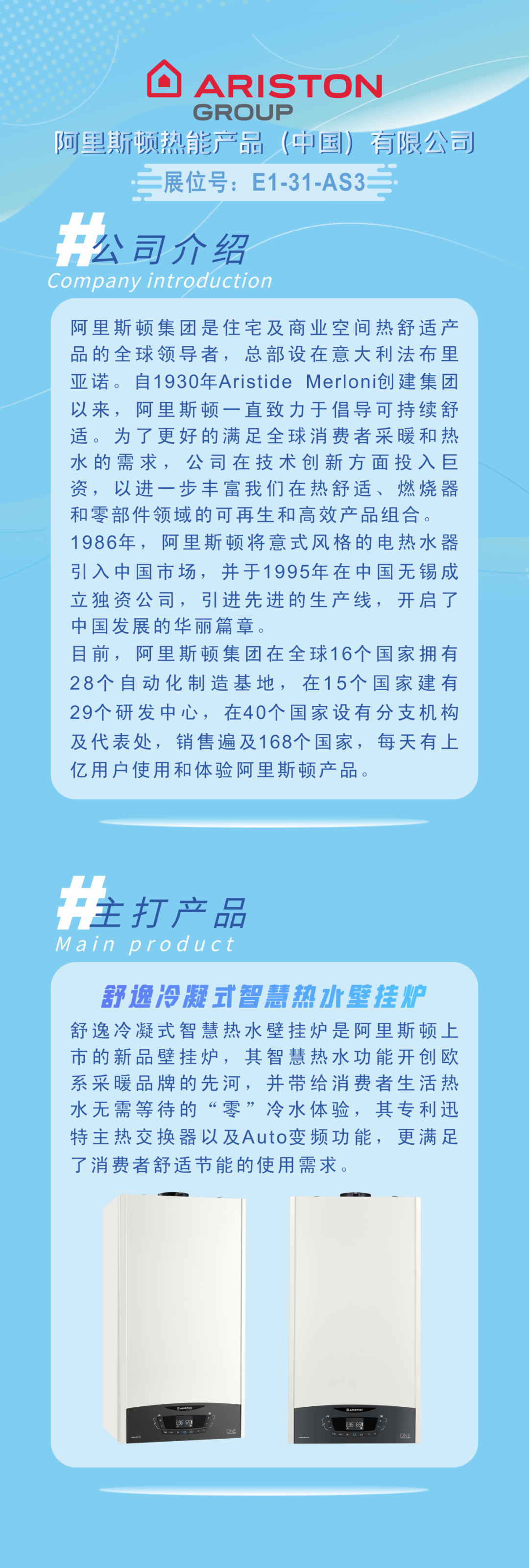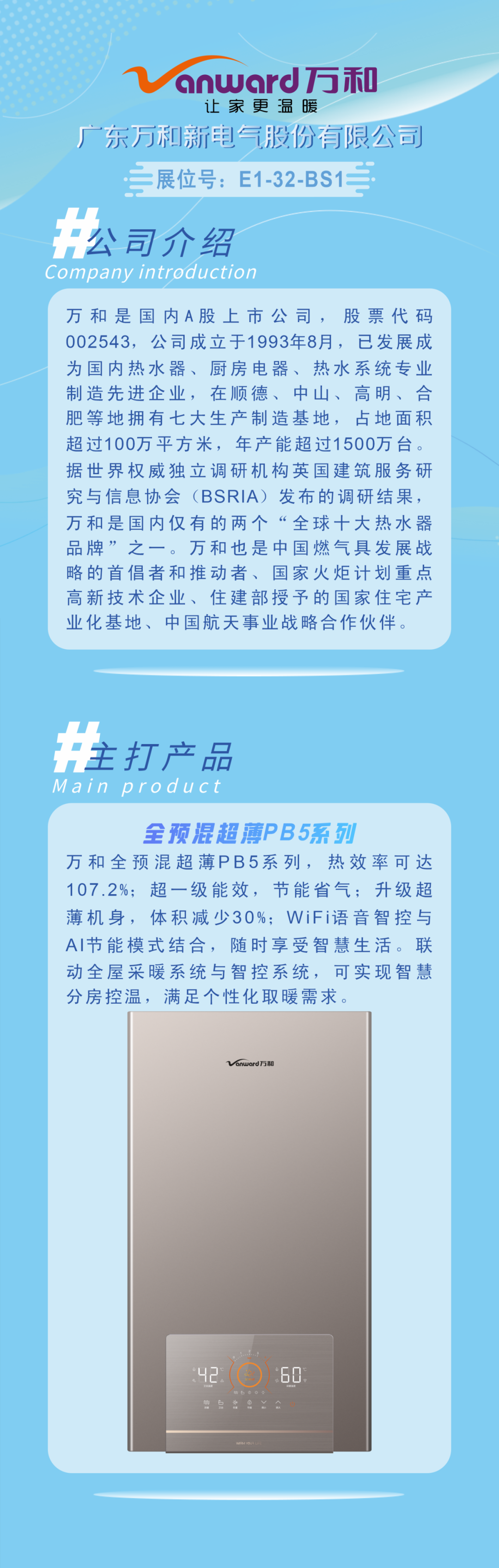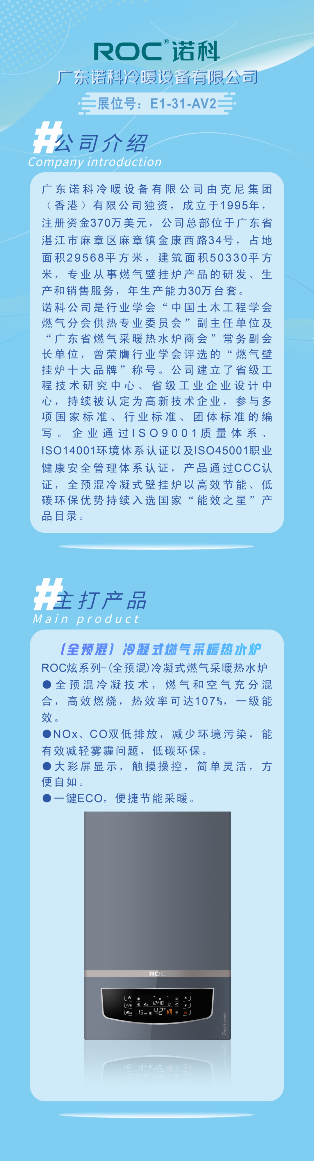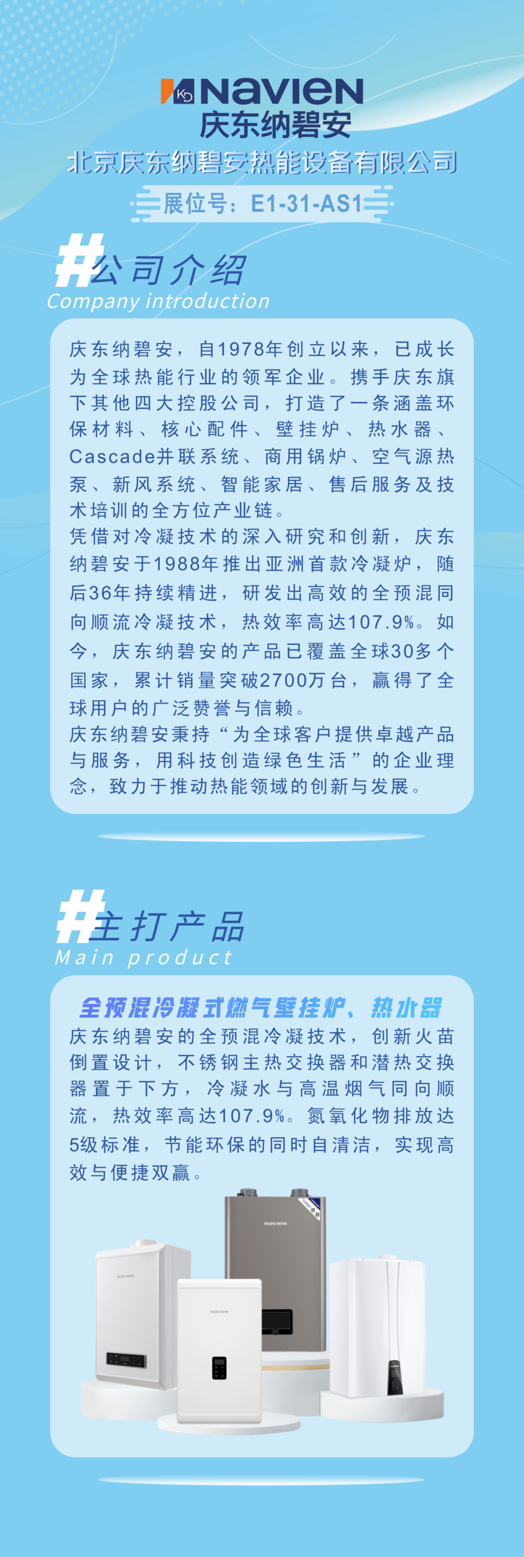 中国供热展将持续为大家汇聚亚洲优秀暖通全产业链和全球优选品牌,打造一场暖通界的年度盛会。即日起,我们将不定期持续更新中国供热展参展展商风采,提前探悉即将重磅亮相于中国供热展现场的优选品牌与优质产品。2024年5月11至13日与您相约北京中国国际展览中心(顺义馆)。本篇文章汇集了E1馆-G20专区的众多优秀展商,一起来看看吧~