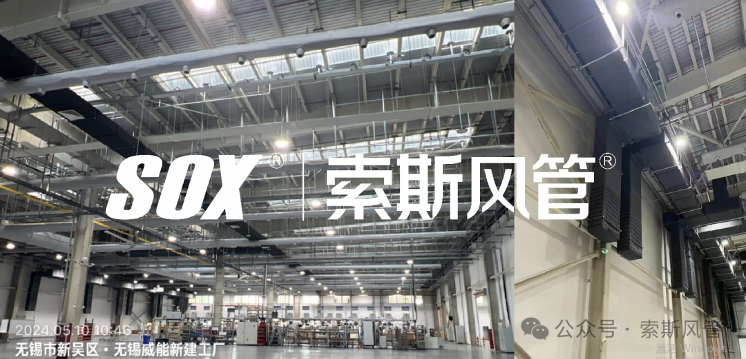 索斯风管方案团队进行了差异化的分区设计,在组装和冲压区采用绝热索斯保温风管传输,搭配织物喷嘴出风、橡塑索斯回风管的产品组合。