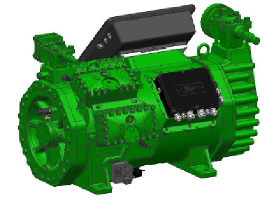 8缸半封闭活塞压缩机首次应用于CO2亚临界压缩机。8PME-140K排气量为199.5m³/h@50Hz,单机制冷量是现有的CO2亚临界压缩机6PME-40K的3倍。解决了大型冷库和速冻机需要安装和运行多台压缩机的状况,减小了机房面积,还可以减少耗电。