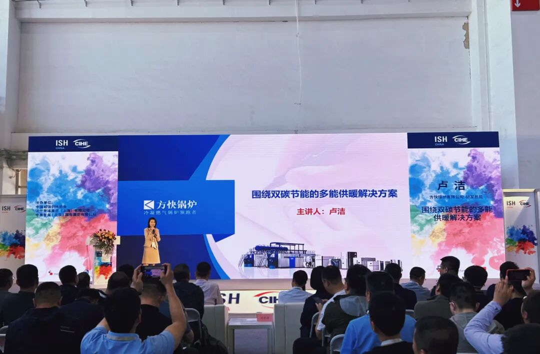 随后,方快锅炉研发总监卢洁女士在中国城镇供热协会论坛上作《围绕双碳节能的多能供暖解决方案》主题分享。她表示方快多能源供暖解决方案是自主设计研发的全新系统,已经良好应用于家庭、商用、工业等全场景上,方快将以独有的差异化产品优势打造市场新增量,赋能用户“刚需”和渠道价值升维。未来,方快将继续通过构建耦合系统等,满足企业生产用热需要,进一步提升各工业应用场景的综合能效收益,助力行业产品和技术升级。