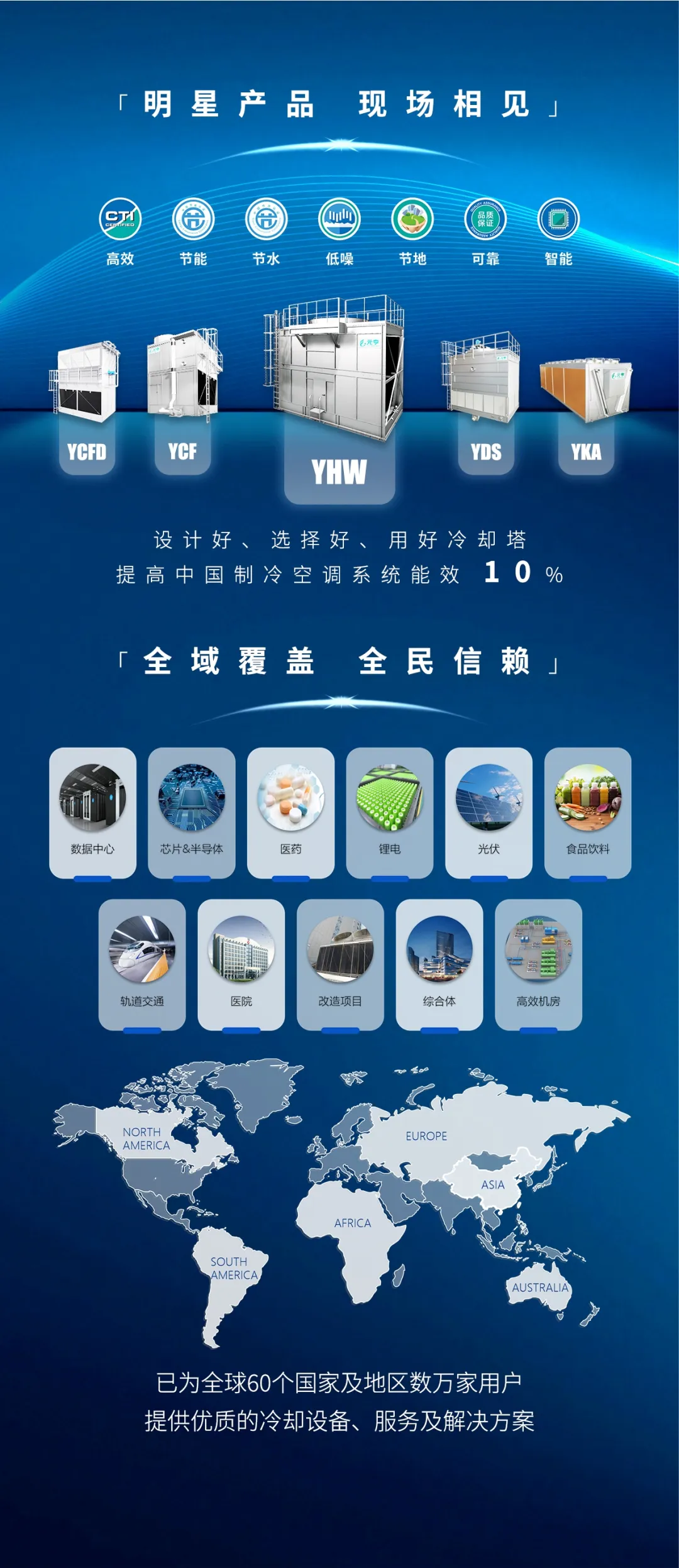 围绕客户在真实项目中的核心关切,YHW旗舰横流冷却塔展现出多项优势,包括: