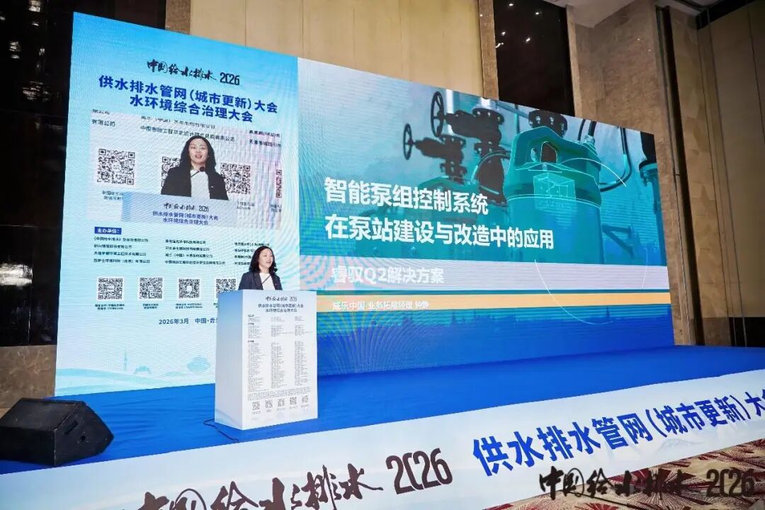 在供水排水管网大会,威乐中国业务拓展经理钟静进行了主题分享,题为《智能泵组控制系统在泵站建设与改造中的应用》,核心聚焦威乐专为中国市场打造的睿驭Q2智能泵组控制系统。