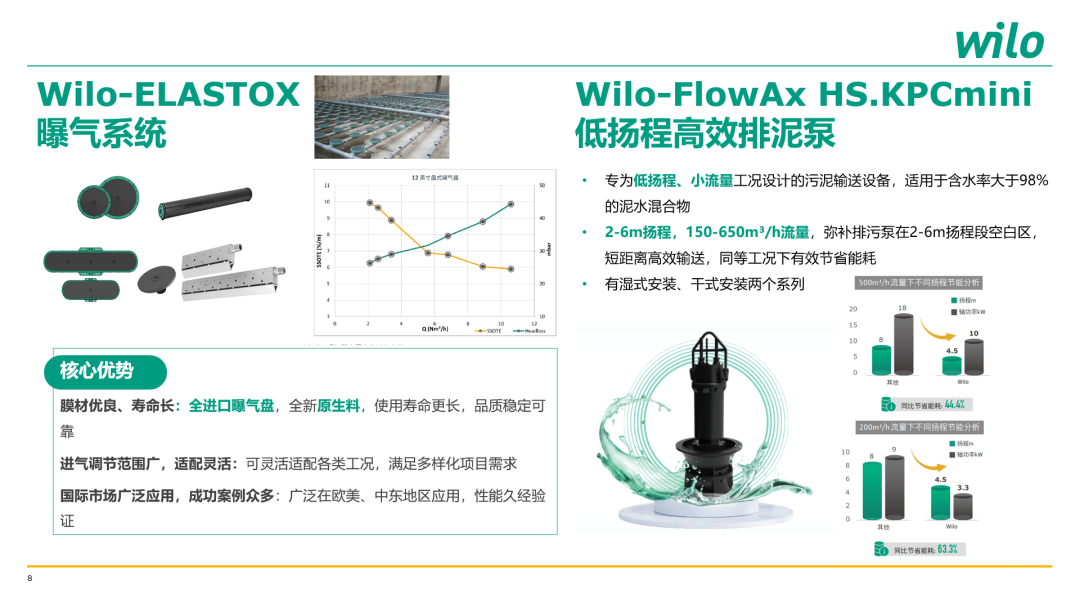 面向全体参会嘉宾,威乐正式发布Wilo-ELASTOX曝气系统与Wilo-FlowAx HS.KPCmini低扬程高效排泥泵两款新品,分别用于污水处理厂的曝气工艺与低扬程、小流量工况下的污泥输送环节。