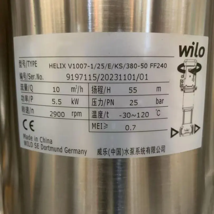 ⚠️泵头处镌刻“Wilo”标志 —— 清晰、规范的标记是正品出厂的保证