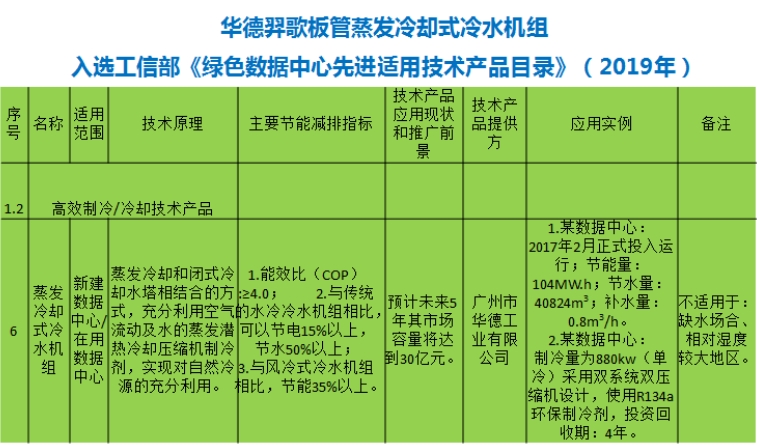 2023年广东节能中心举办的广东省绿色数据中心能效提升技术推广活动,华德数据中心蒸发冷却空调入选了2023年广东省节能技术、产品先进目录,让越来越多的数据中心可以使用高效节能、节水、节地的蒸发冷却空调。