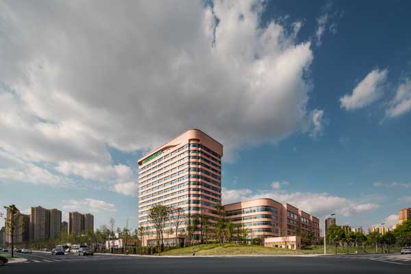 四川大学华西第二医院是卫生部部署在西部地区的国家三级甲等妇产儿童专科医院,本工程为锦江院区一期工程,位于成都市锦江区三圣乡,包括门急诊医技楼和第一住院楼,建设床位数900床,总建筑面积15.5万m2,建筑高度72.1m。其中门急诊医技楼地下一层,地上六层;第一住院楼地下一层,地上16层。地下为车库、设备用房及放疗中心等,地上为门急诊、药房、检验科、手术室、ICU、IVF、中心供应及病房等。
