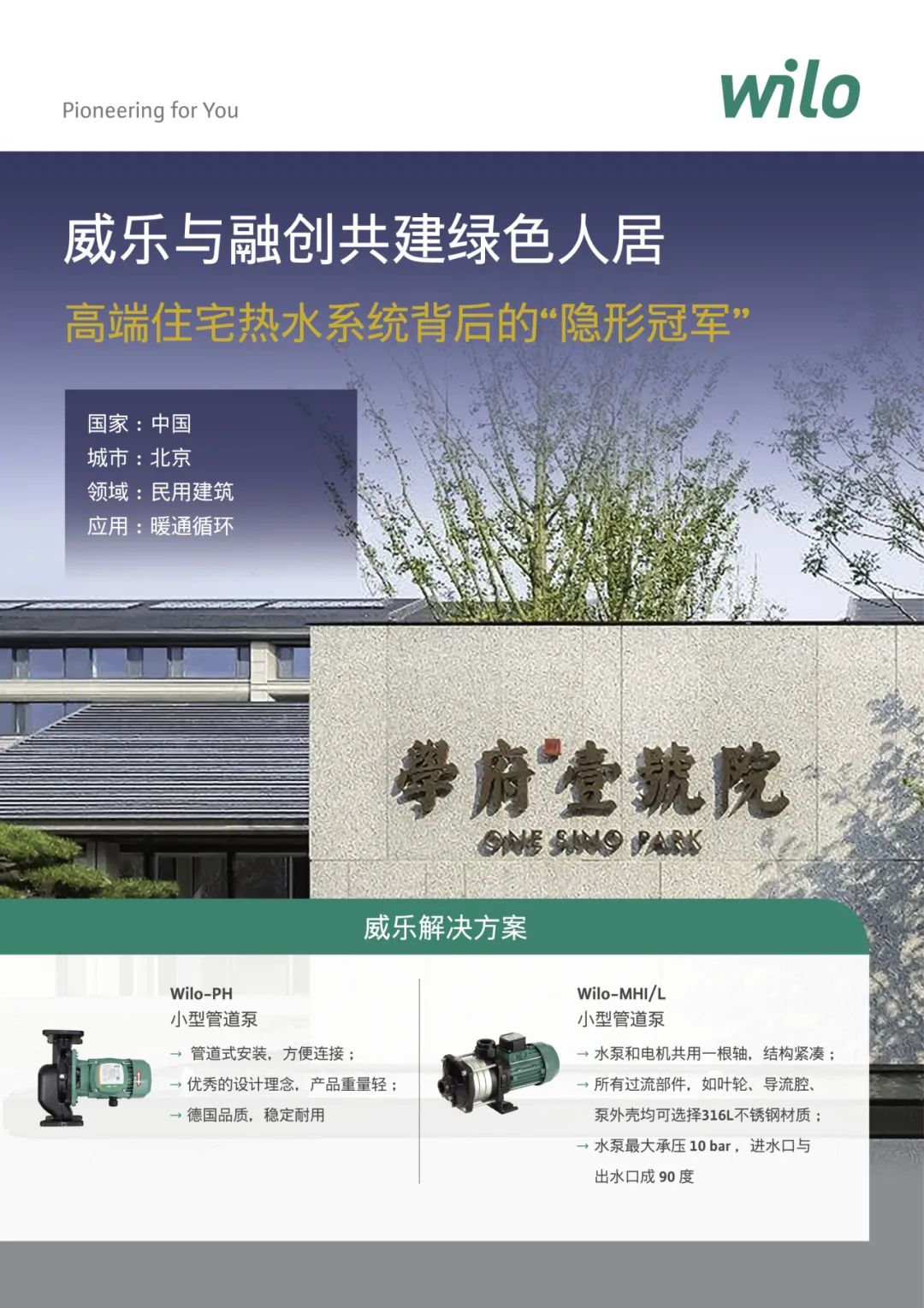 舒适热水的标配早已从恒温拓展到“热水零等待”。学府壹号院为响应绿色建筑节能减排的要求采用太阳能与建筑一体化热水系统,与建筑一体化设计,确保节能性、稳定性及用户体验。而威乐以Wilo-PH 751QH系列循环泵与Wilo-MHI 204系列卧式多级泵为核心,构建了覆盖900户家庭、稳定运行的定制化智慧热水解决方案。
