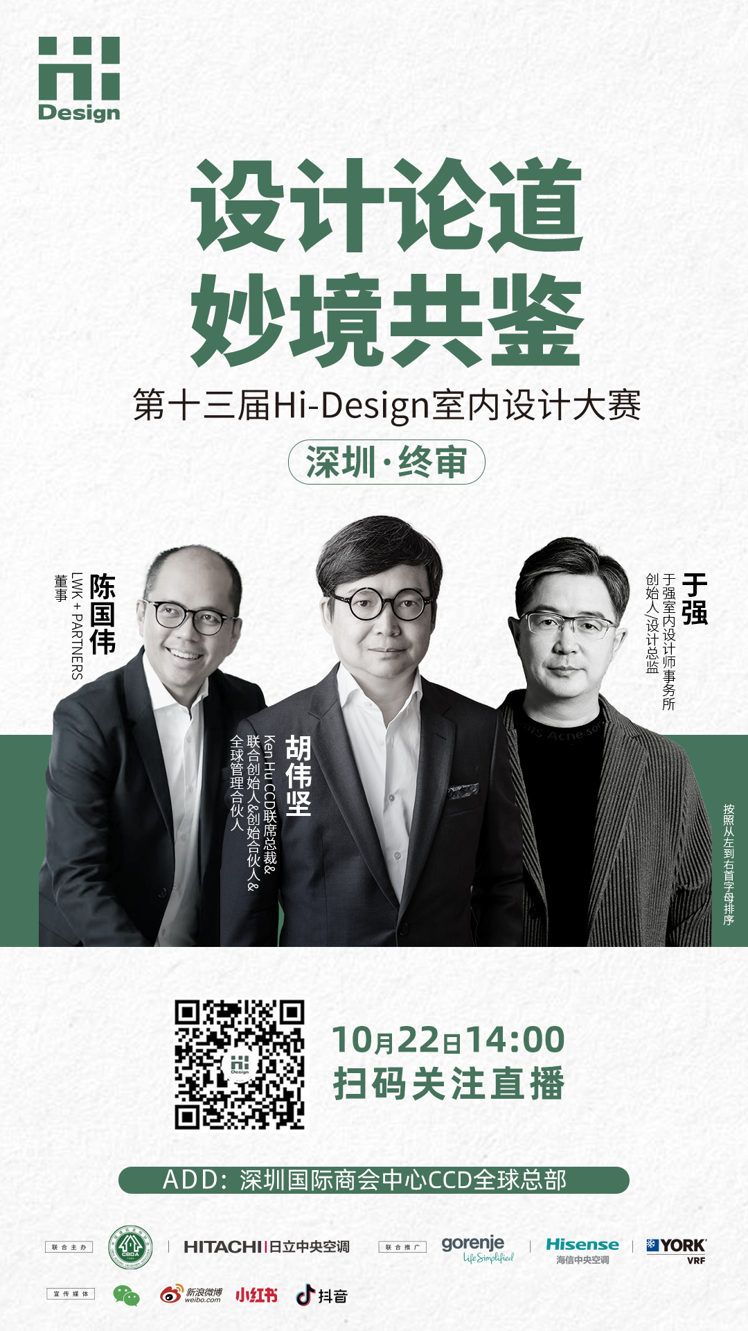 当深圳湾的晨光掠过CCD总部“东意西境”的建筑轮廓,这座承载着中国设计出海雄心的空间,即将在10月22日迎来第十三届Hi-Design室内设计大赛的终审时刻。